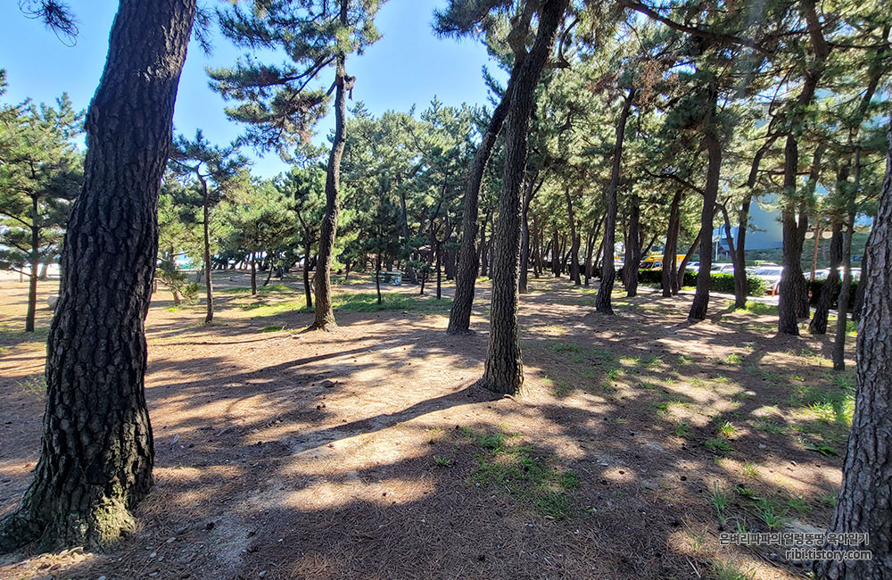 경포해수욕장은 바닷가에 소나무 숲이 조성되어 있습니다.