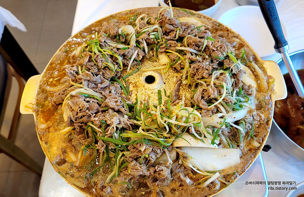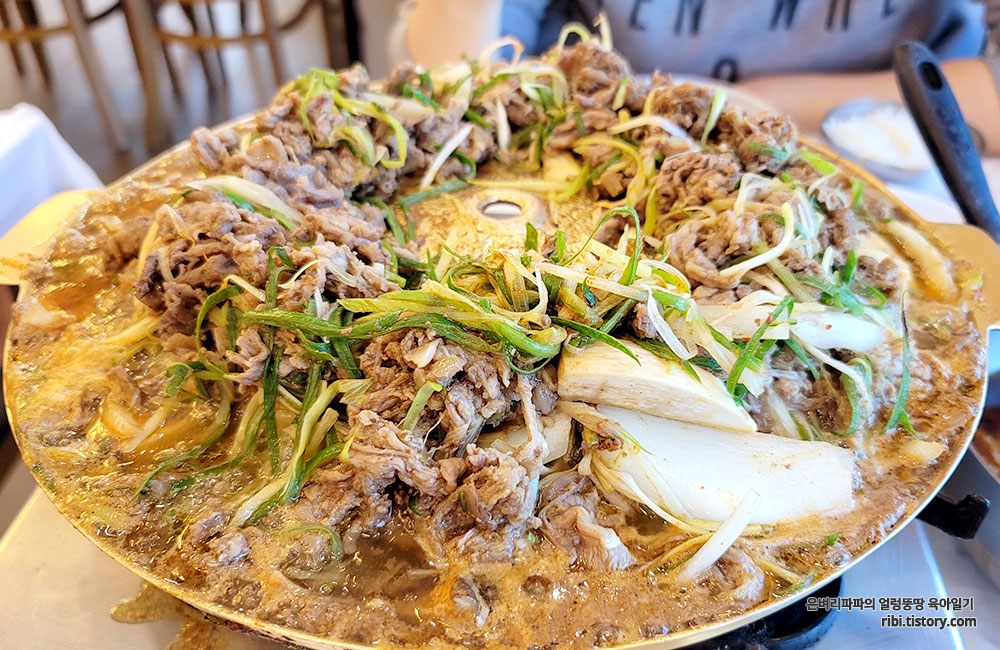 한우와 파가 어우러져 산더미처럼 쌓여 나오는 옛날 한우불고기~ 강릉불고기~!