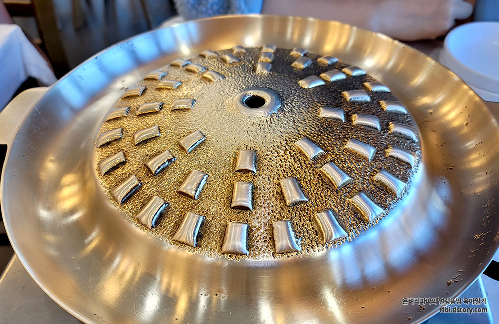 불판은 서울식 불고기를 연상시키는 불판입니다.