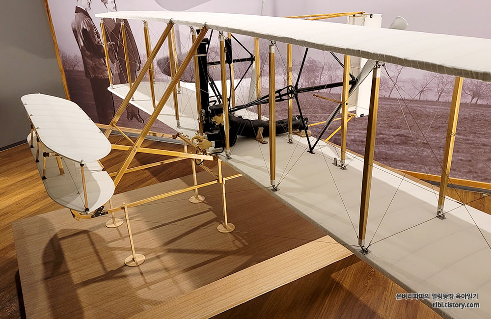 역시나, 항공의 역사하면 가장 먼저 떠오르는 라이트 형제가 만든 비행기 모형이 보입니다.