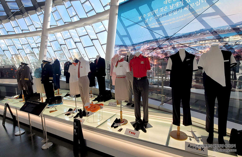 그리고, 국내 항공사의 승무원 유니폼도 전시되어 있어요.