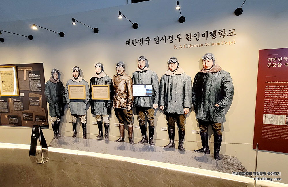 가장 먼저 눈에 들어온 건, 야외전시장에서 봤던 대한민국 임시정부 한인 비행학교의 모습입니다.