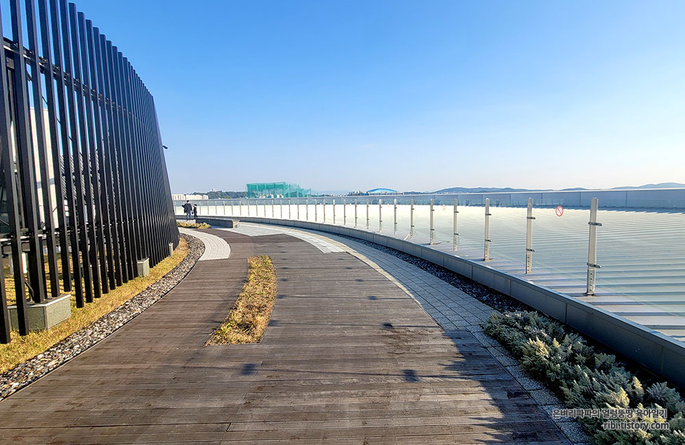 국립항공박물관 옥상 전망대는 건물 모양을 따라 동그랗게 산책로로 구성되어 있습니다.