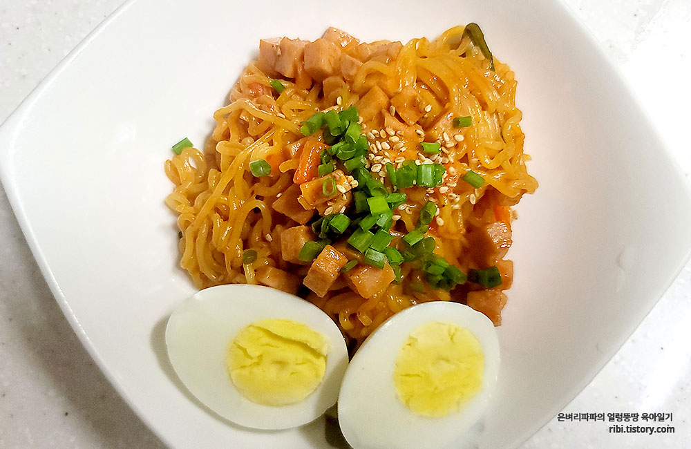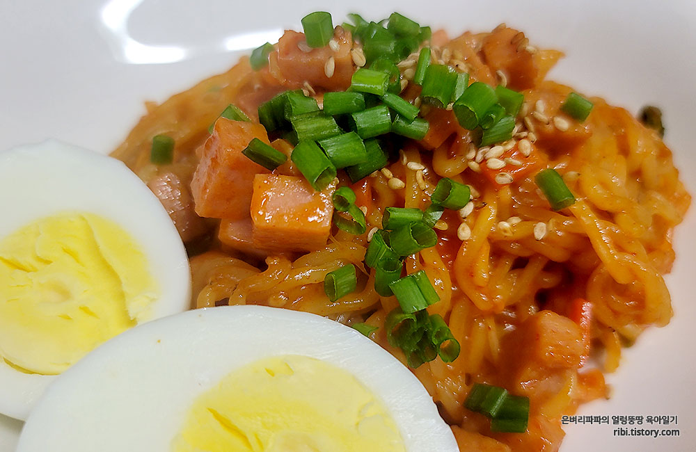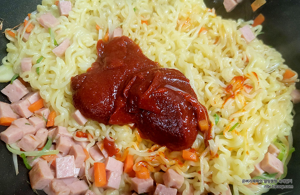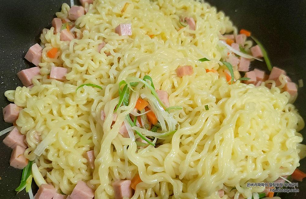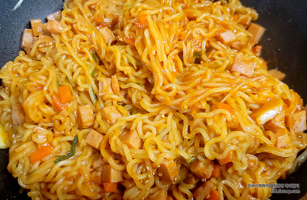 스팸과 파채의 조화가 환상적인 스팸 볶음라면입니다.
