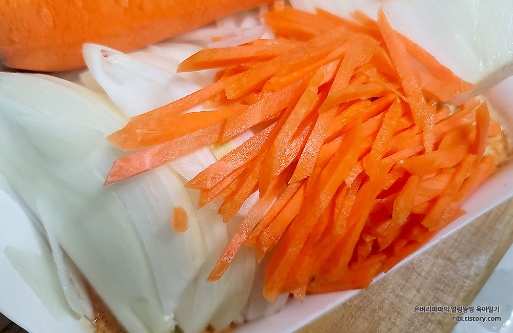 양파와 당근은 완전히 익히지 않아도 됩니다.