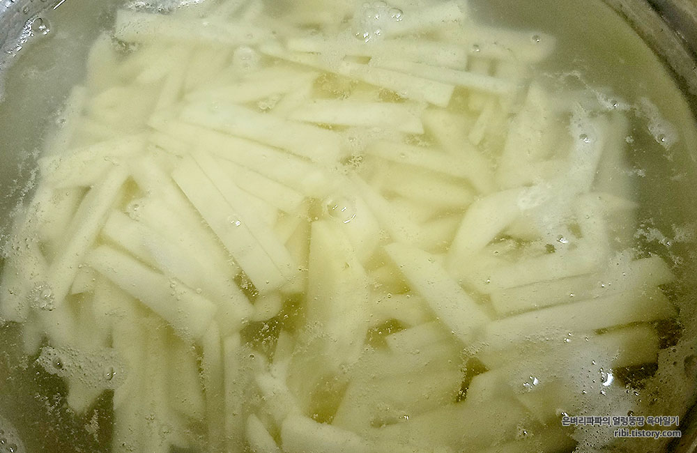 감자를 다 채 썰고 난 후... 가장 중요한 단계인데요.