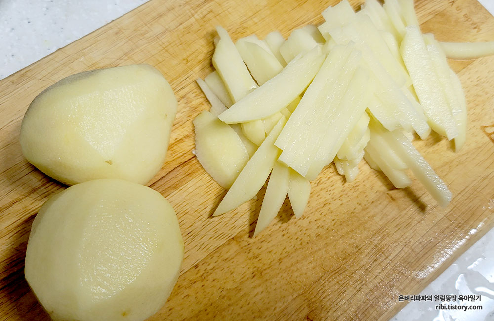 우선 감자를 적당한 크기로 채 썰어 준비합니다.