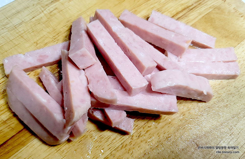 깡통 햄도 같은 크기로 썰어 준비해 주세요.