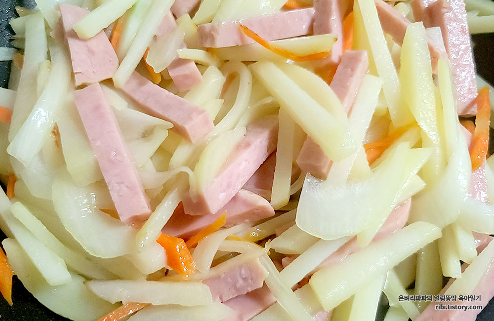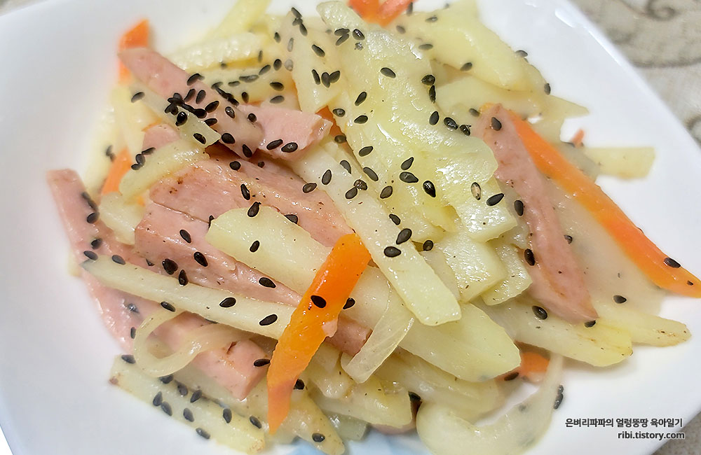 한동안은 요 햄 감자채 볶음이 식탁에 빠지지 않을 것 같군요.