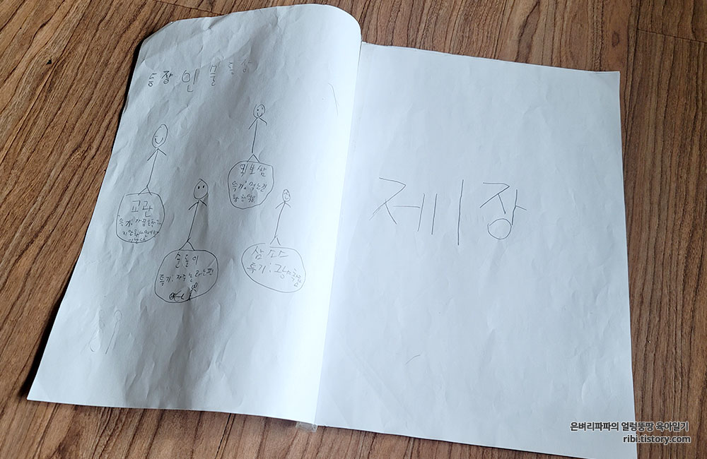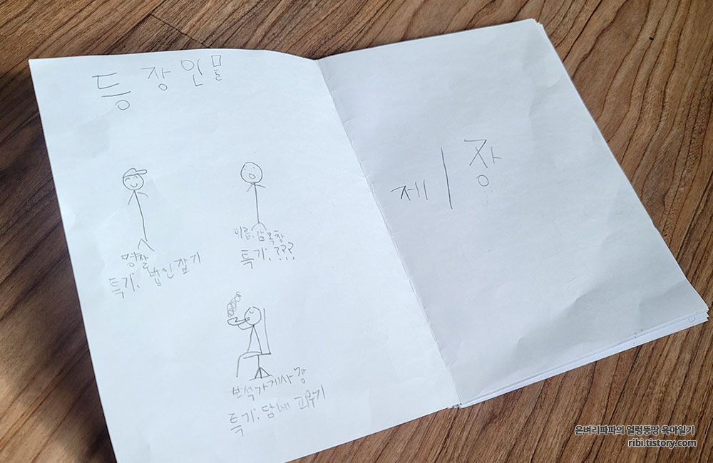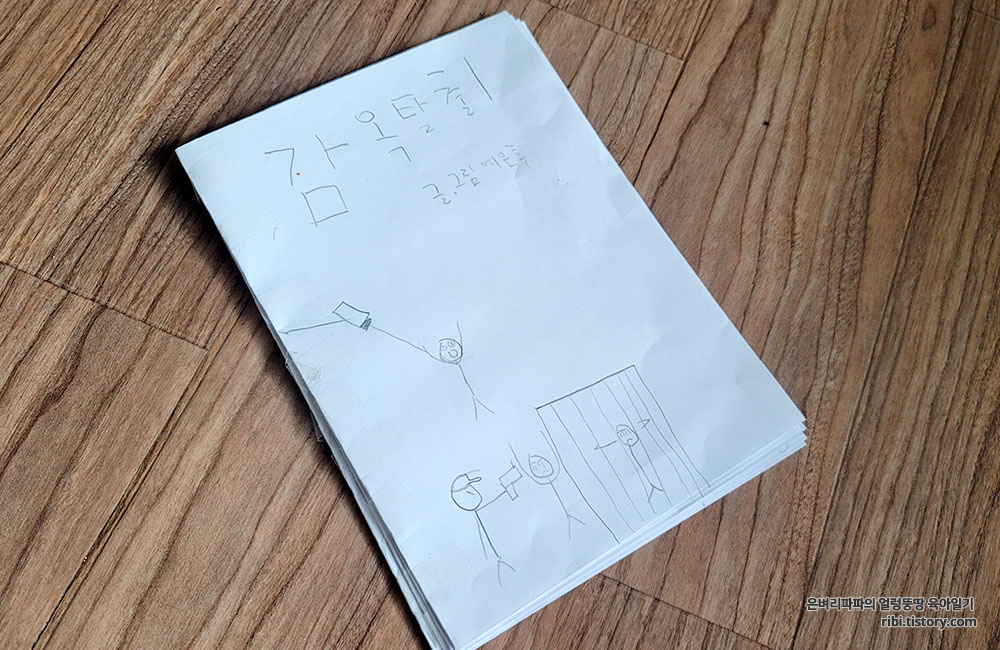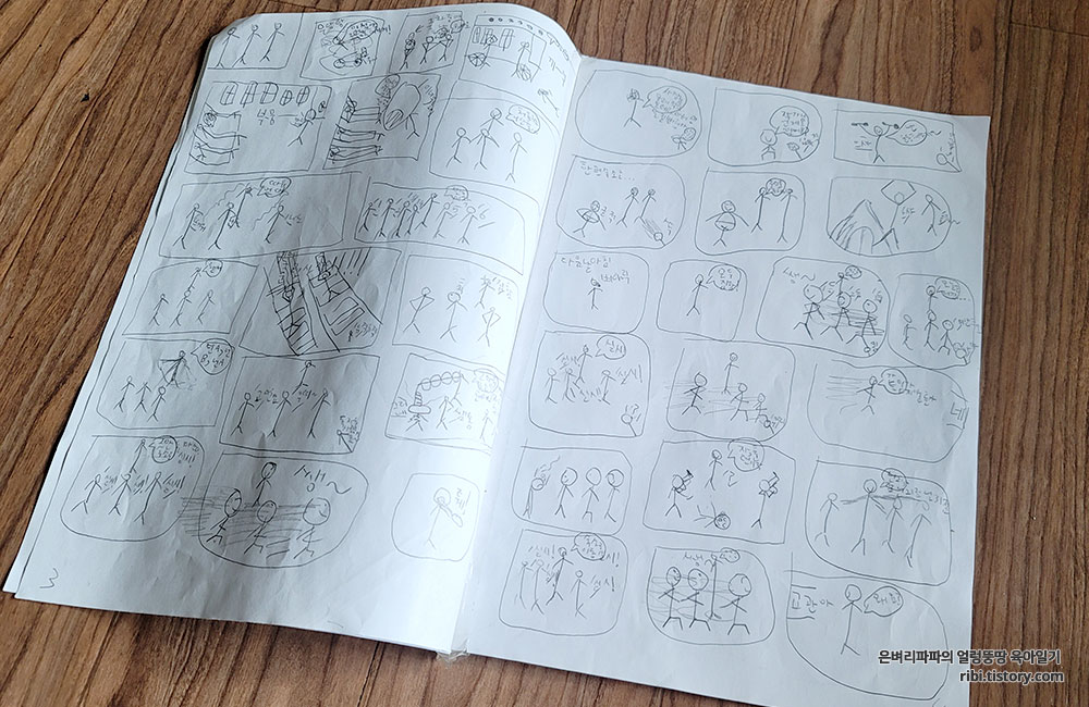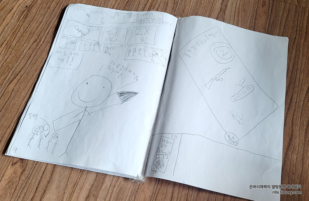 함께 놓여 있던 종이뭉치에서 발견된 아들 녀석이 직접 엮은 만화책...