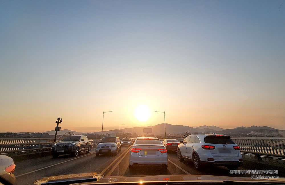 강화도를 나오는 차들과 들어가는 차들로 양쪽 차선이 꽉 막혀 있더라고요.