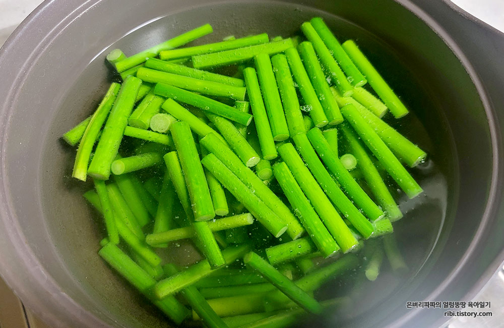 살짝 데쳐내면 매운맛과 아린 맛이 중화되거든요.