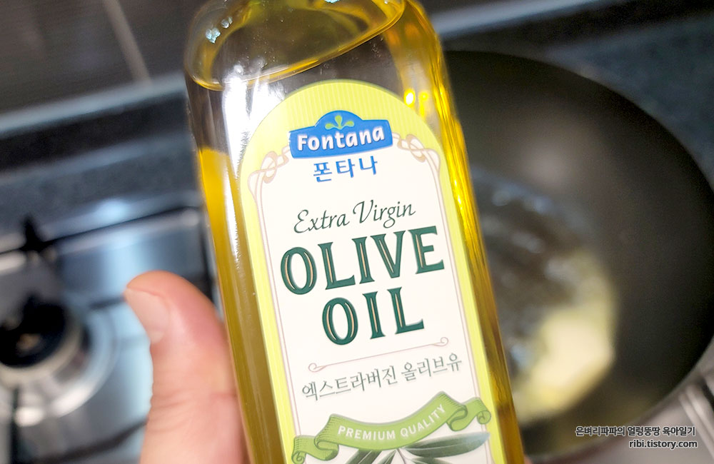 그리고 올리브유를 넉넉히 부어줍니다.