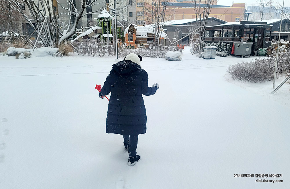 일찍 눈뜬 아들 녀석을 불러, 눈 구경을 나가기로 했습니다.
