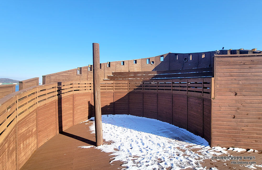 설날에 내린 눈이 아직 고스란히 쌓여 있는 뱃머리 전망대...
