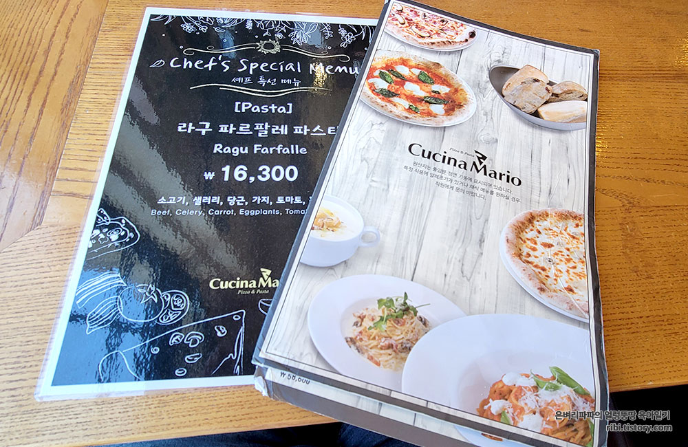 테이블에 놓여 있는 메뉴판을 살펴봅니다.