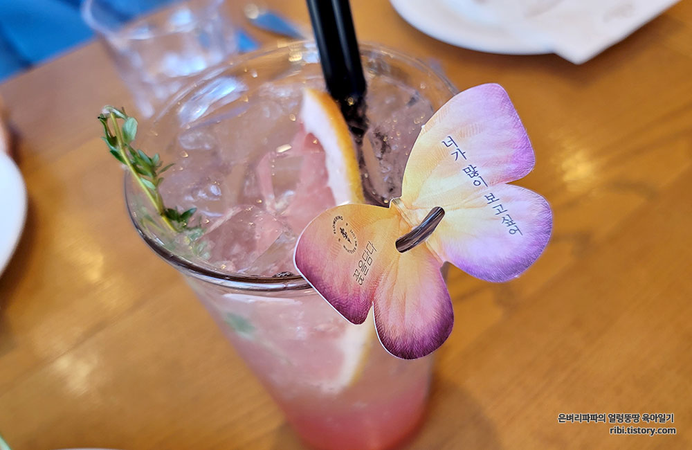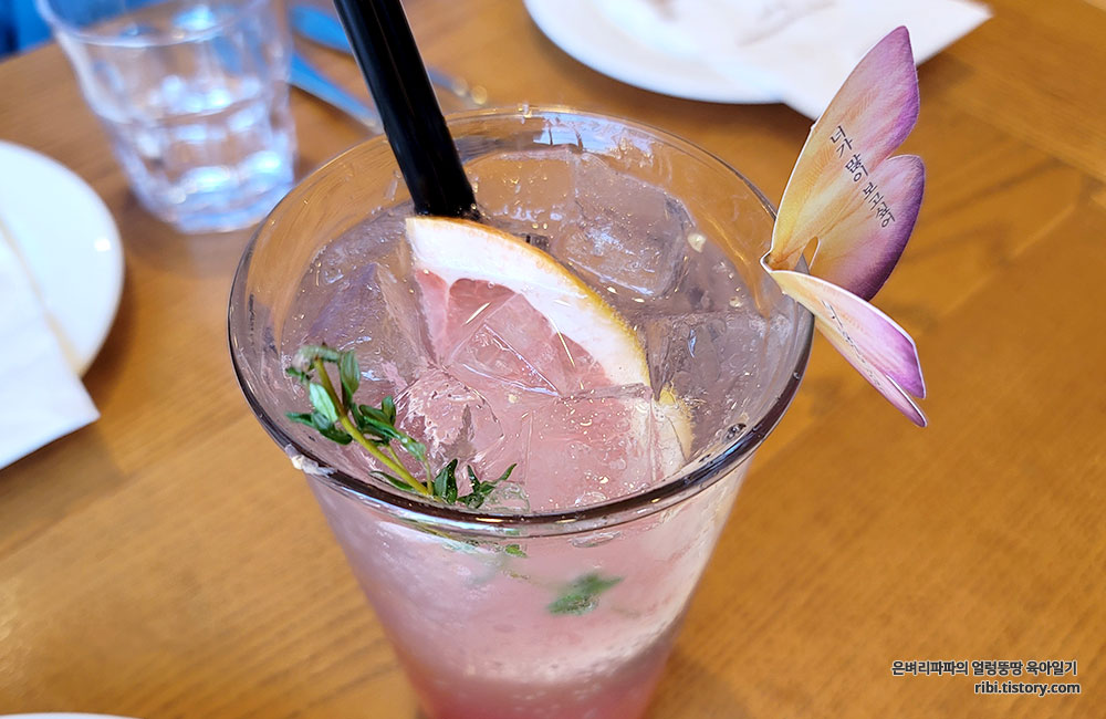 추가로 주문한 단품 자몽에이드는 보자마자 호기심을 자아내기에 충분했습니다.