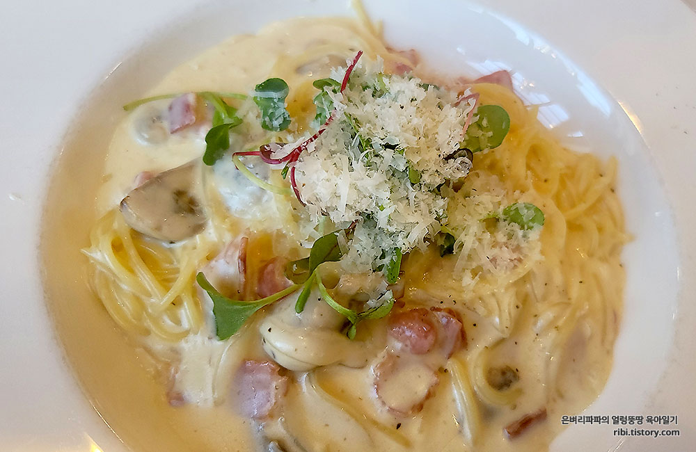베이컨 크림 파스타는 엄마, 아빠의 것입니다.