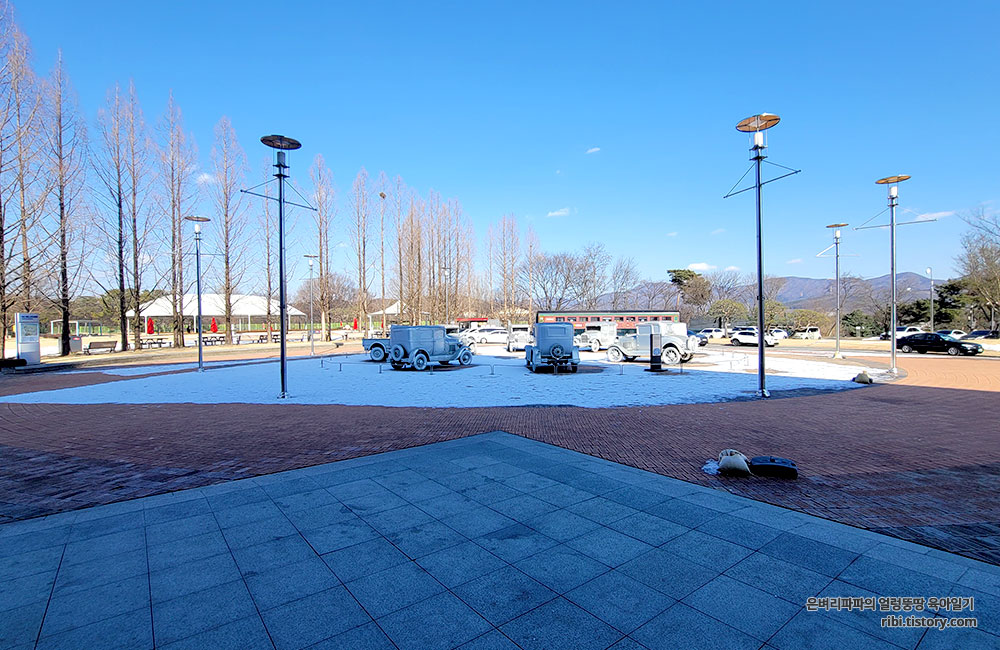 아직 눈이 채 녹지 않은 야외전시장을 한번 둘러봤습니다.