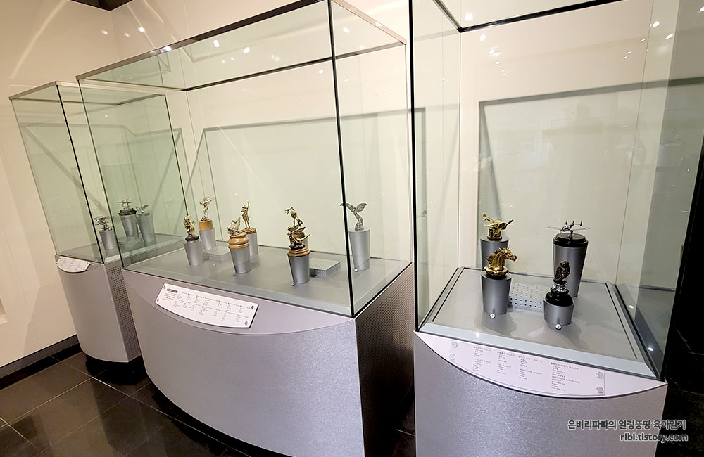 피크닉 세트와 모형차외에도 차량의 품격을 말해주는 마스코트들이 전시되어 있습니다.