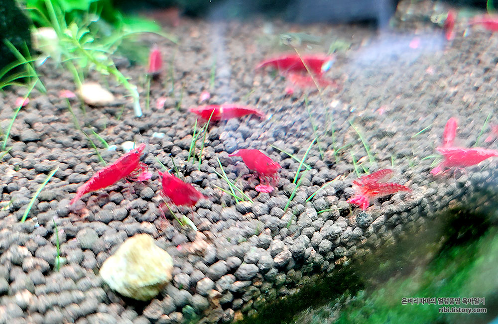 바닥에는 마리모를 비롯해 아주 작은 새우들~ 그리고 달팽이였는데요.