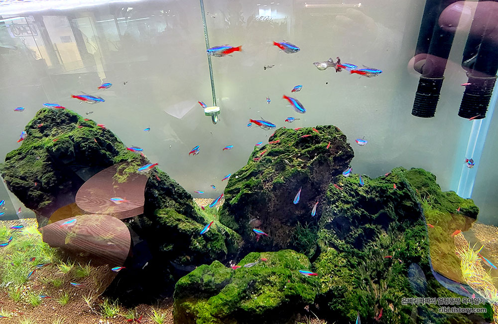 평화로워 보이는 어항 속 물고기를 바라보고 있으니 시간 가는 줄 모르겠네요.