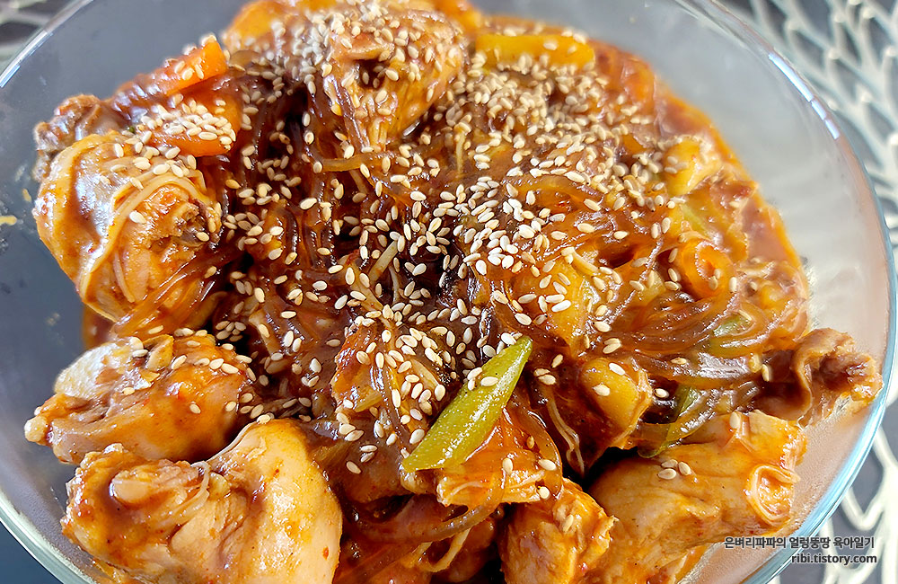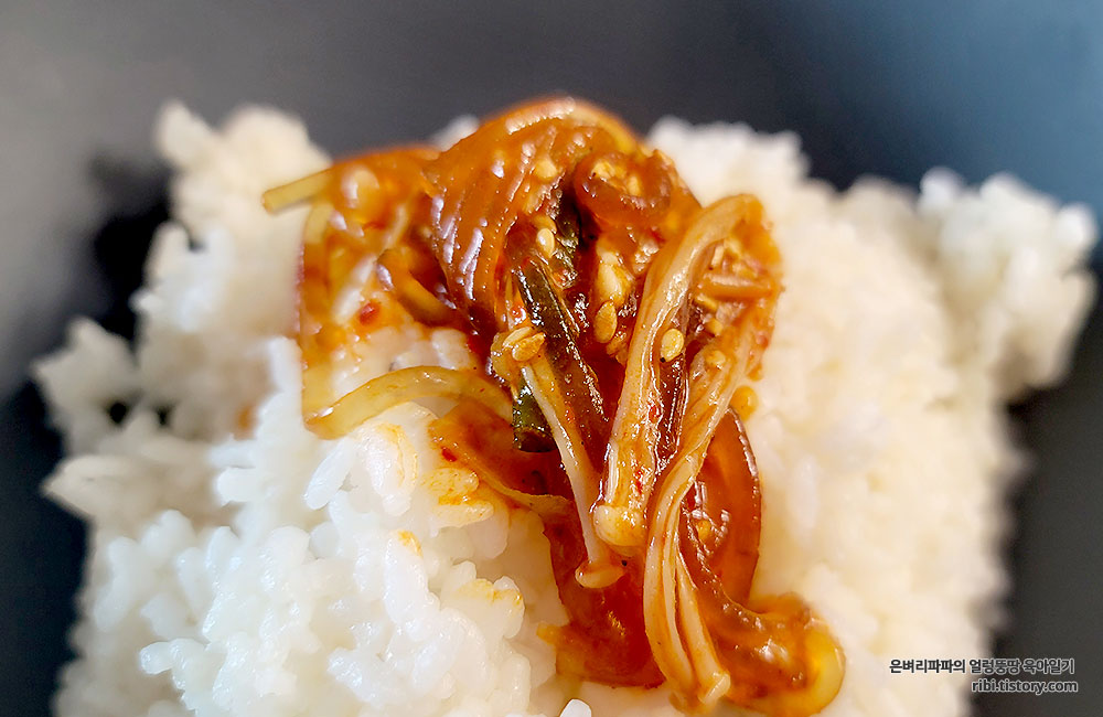 뜨끈한 밥 위에 탱탱한 당면을 올려 먹으니 그야말로 꿀맛입니다.