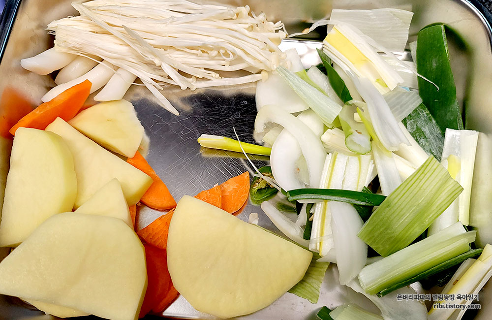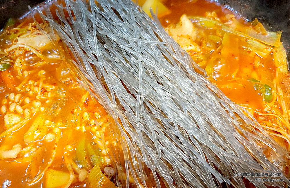집에 있는 당면을 넣기로 하고 추가 사리는 생략했습니다.^^