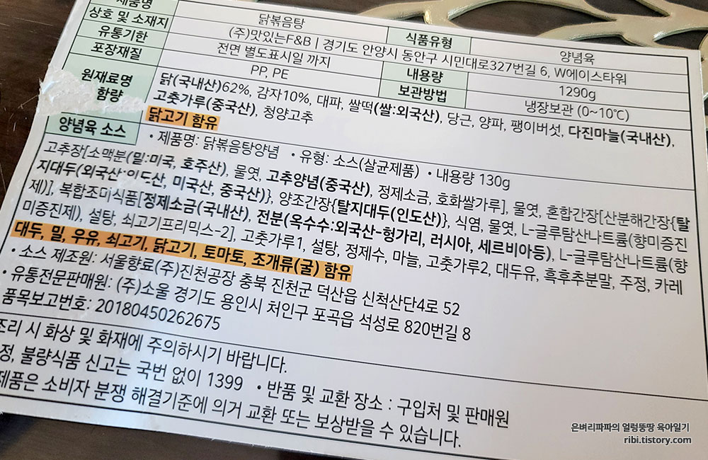 딸아이가 주문한 닭볶음탕 밀키트를 주문하면서,