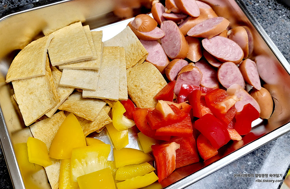 재료 : 떡국떡, 어묵, 소세지, 파프리카, 대파, 다진 소고기