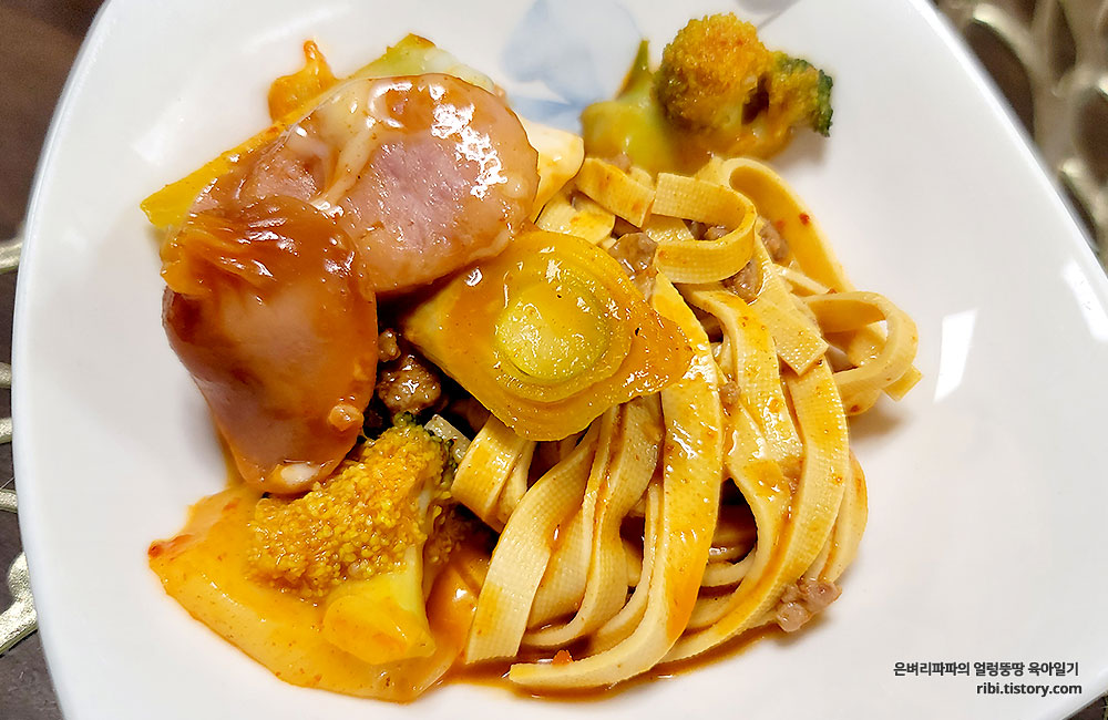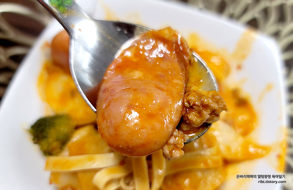 소시지와 다진 소고기를 추가했어요.ㅋ
