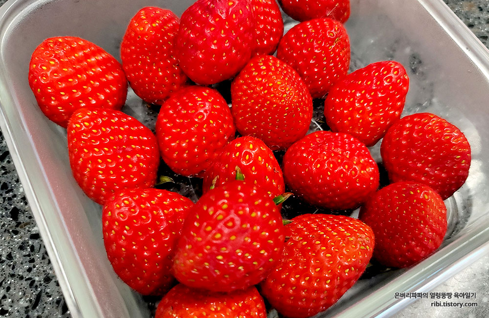 그리고 로컬푸드 직매장에서 구입한 딸기를 깨끗하게 씻어 곁들여 줬습니다.
