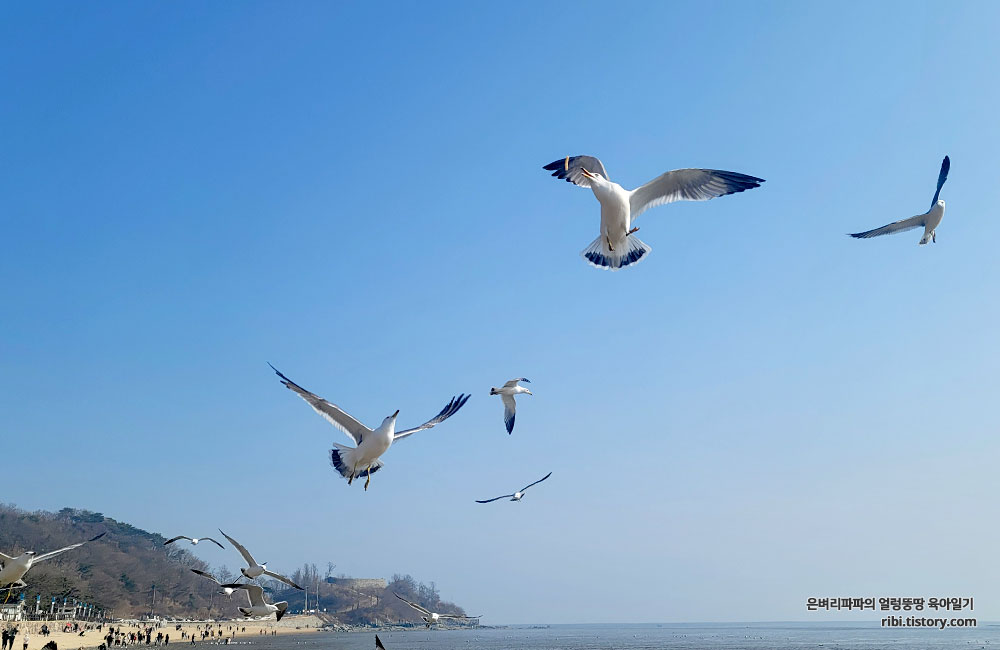 사람들 틈바구니에서 힘차게 날갯짓하는 갈매기를 실컷 바라봤네요.^^