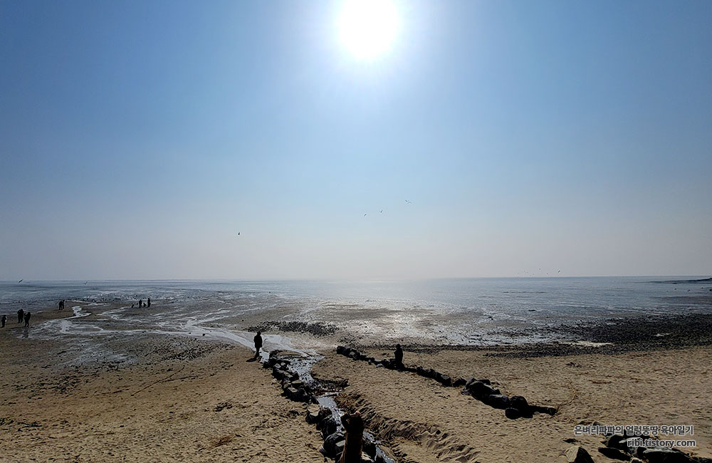 구름 한 점 없는 파란 하늘과 썰물이었던 동막해수욕장~