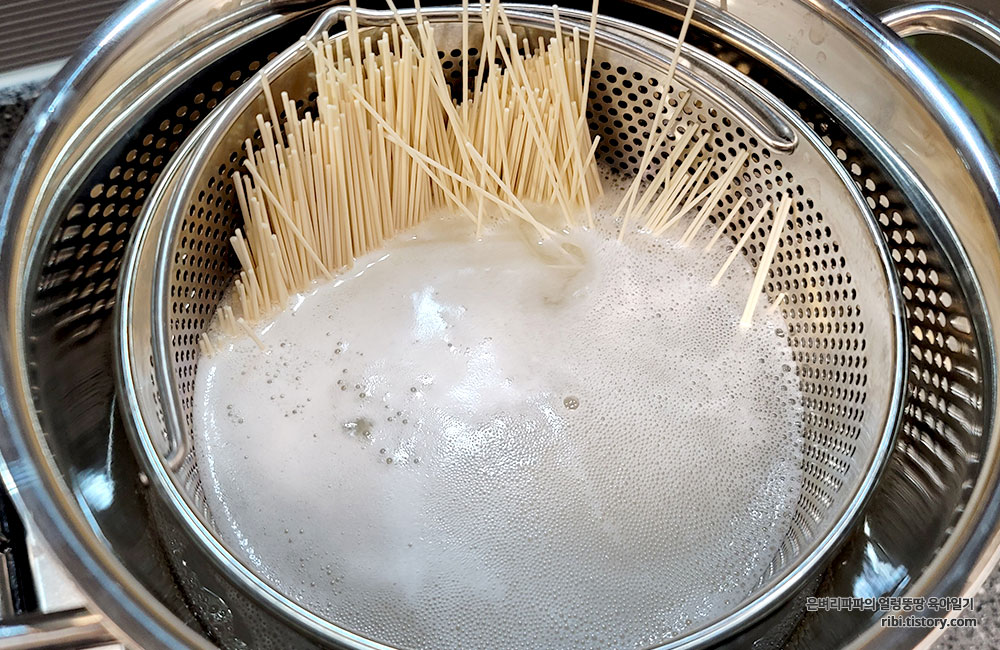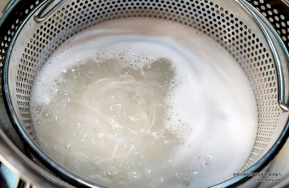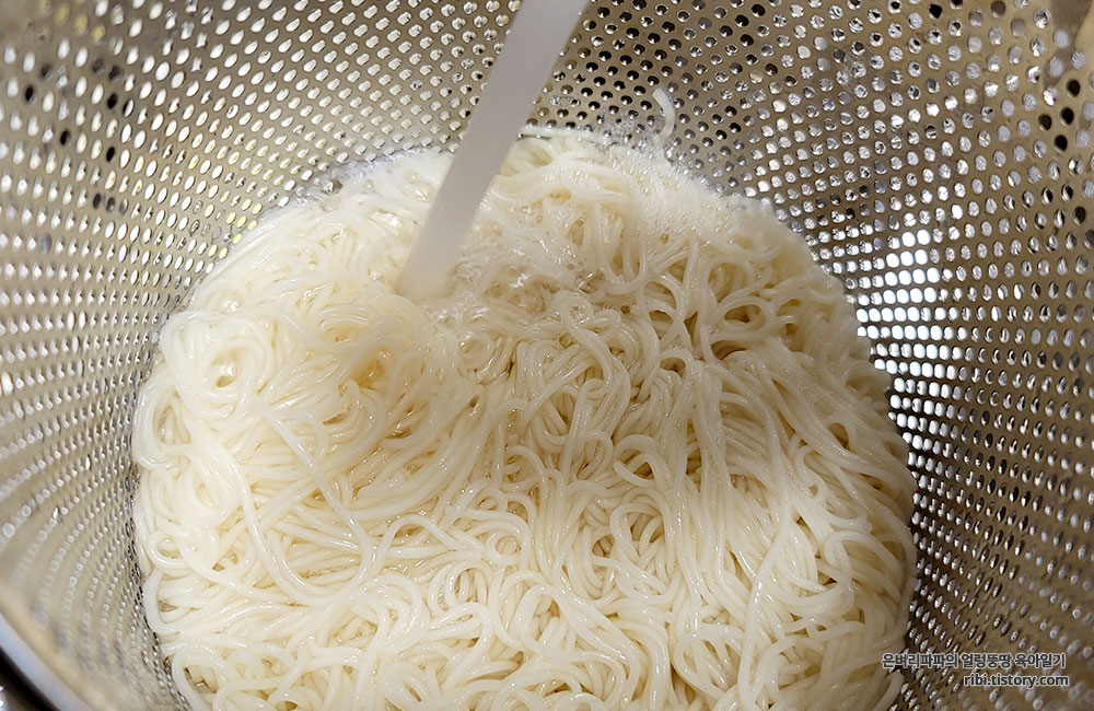 얼마큼 잘 헹구느냐에 따라 국수 면발의 탱글함이 좌우되는 것 같아요.^^