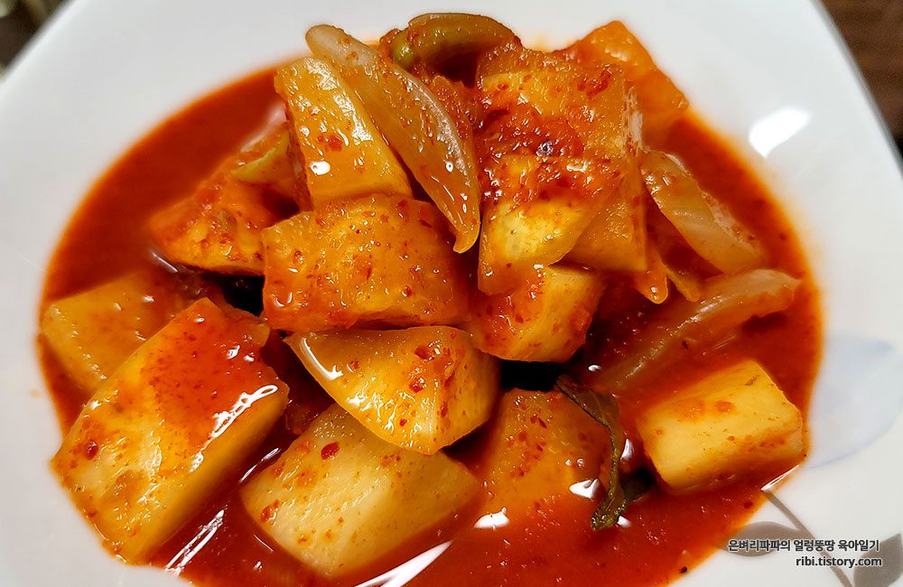 배추김치 대신, 적당히 익은 깍두기를 곁들였습니다.