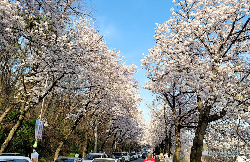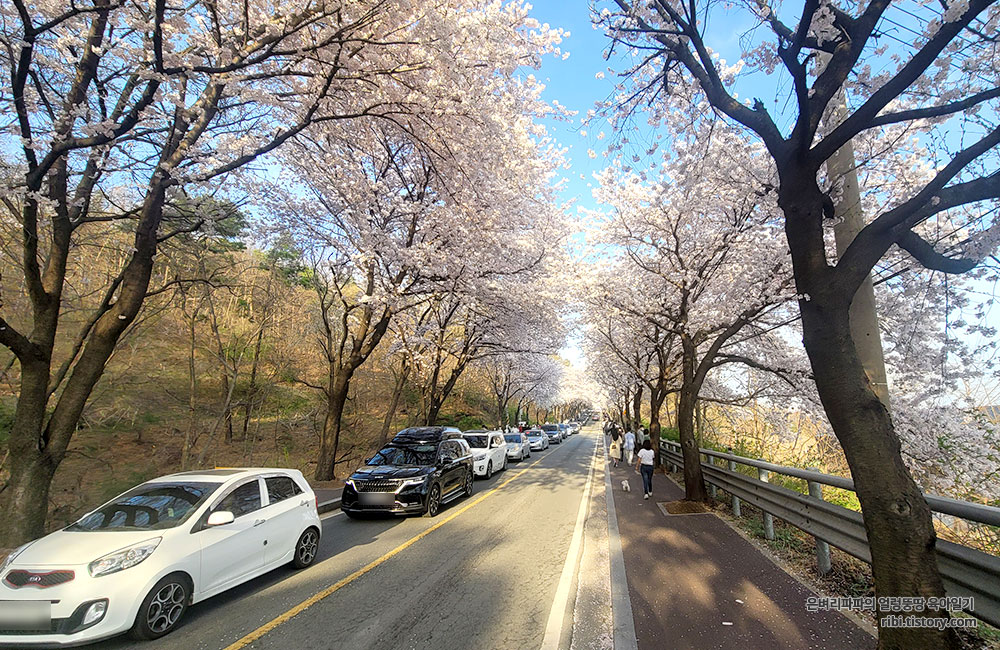 1km가 넘는 왕복 2차선 도로에 벚꽃길이 조성되어 있어요.