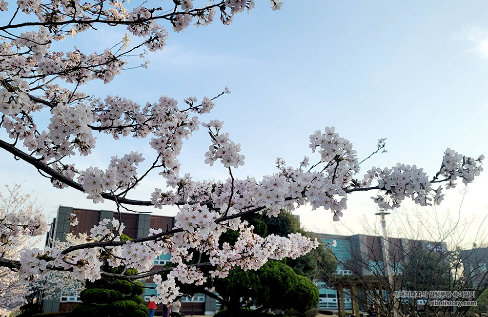 국제대학교 내부의 벚꽃은 아직 피기 전인 것과 이미 만개한 벚꽃이 함께 보이네요.