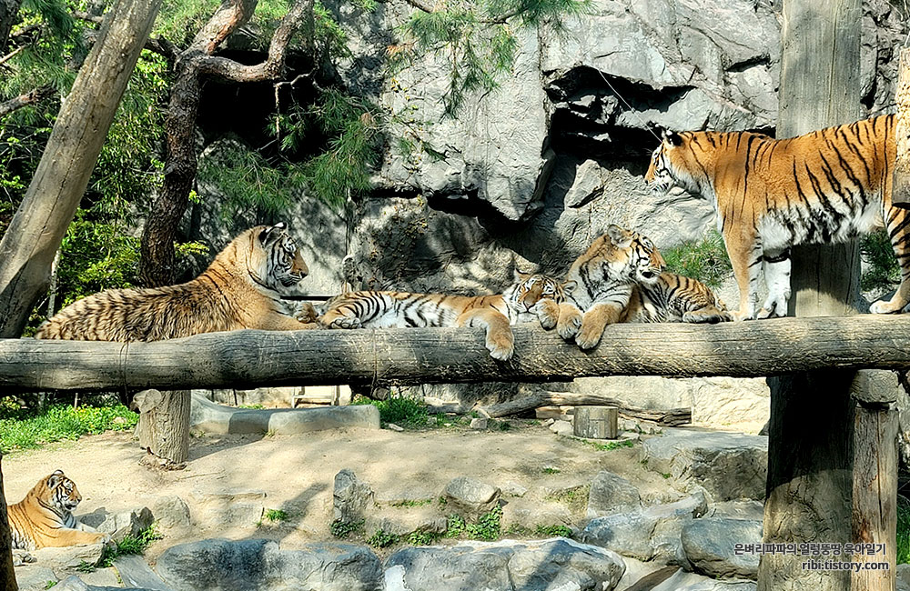 그리고 봄햇살을 만끽하는 다섯 마리 호랑이를 만나 즐거움이 배가 되는 순간이었습니다.