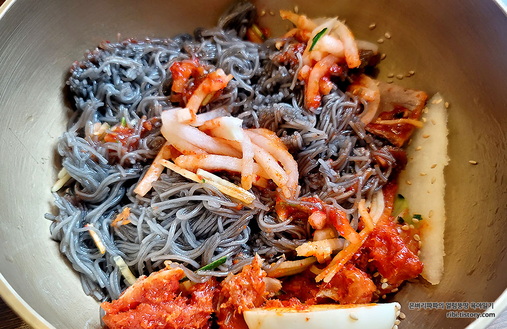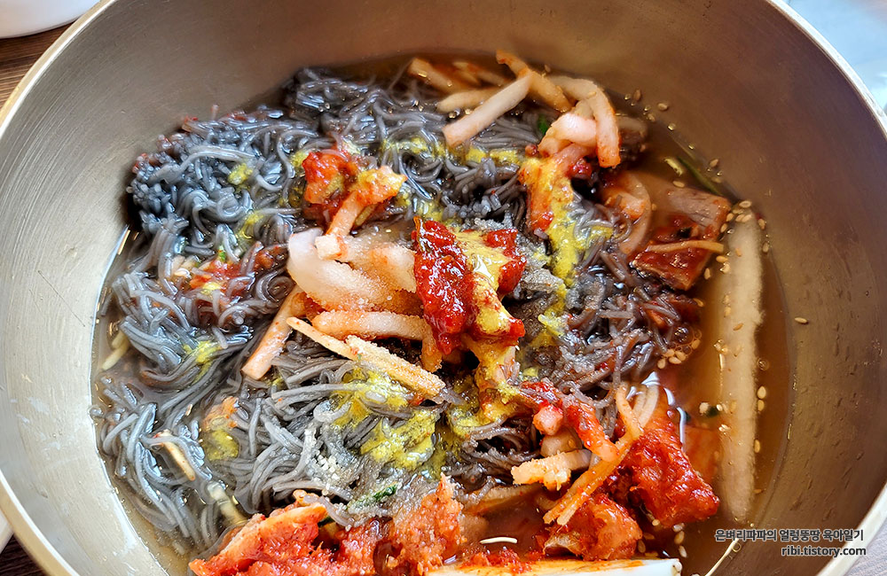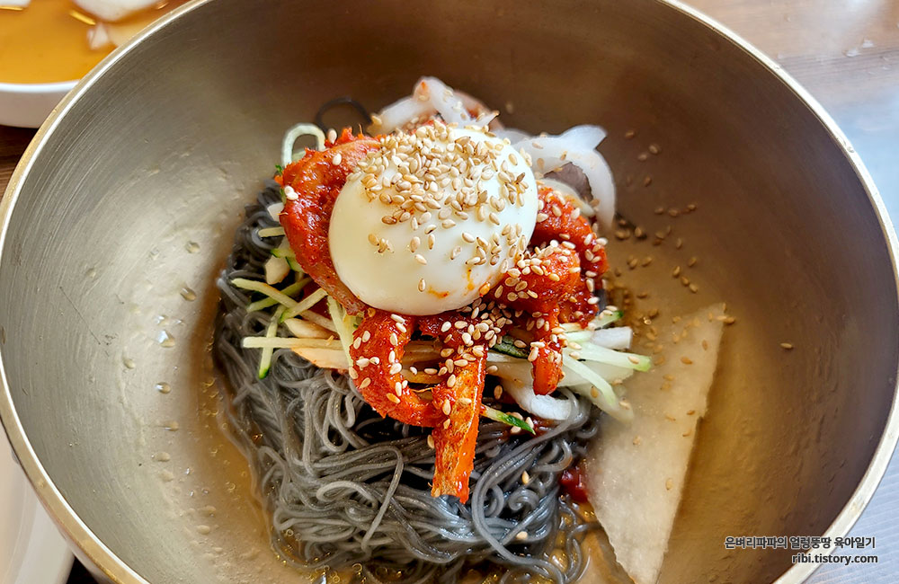 냉면이 나오는 순간, 조금 특이하다 싶기도 하고, 맛도 만족스러웠어요.