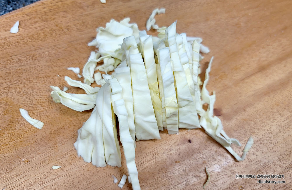그리고 냉장고에 있던 자투리 채소를 꺼내어 잘라 준비했어요.