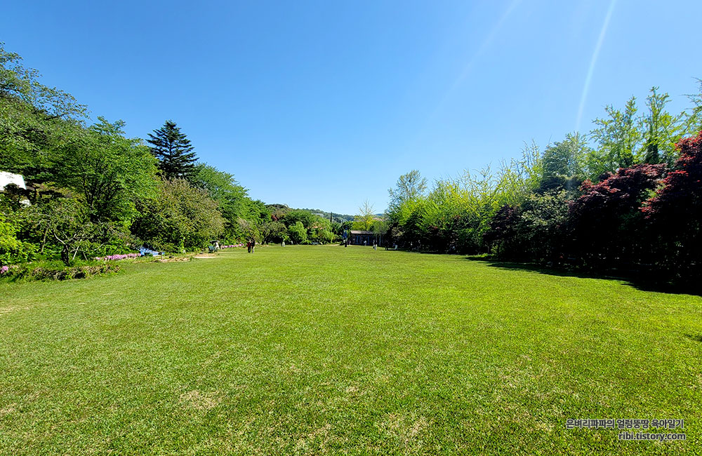 울창한 나무숲을 지나니 드넓게 펼쳐지는 초록의 잔디가 가득한 운동장이 나옵니다.