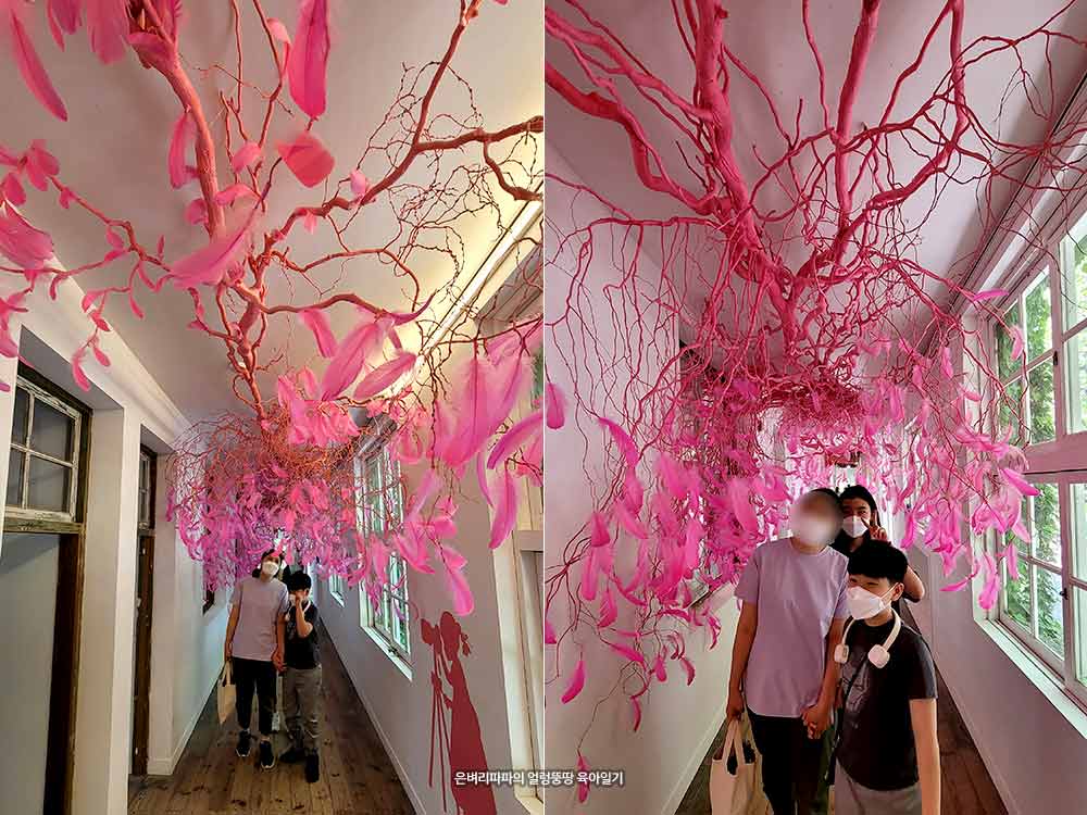 설치미술이 전시되어 있던 좌측 복도에는 핑크빛 터널이 만들어져 있어요.^^