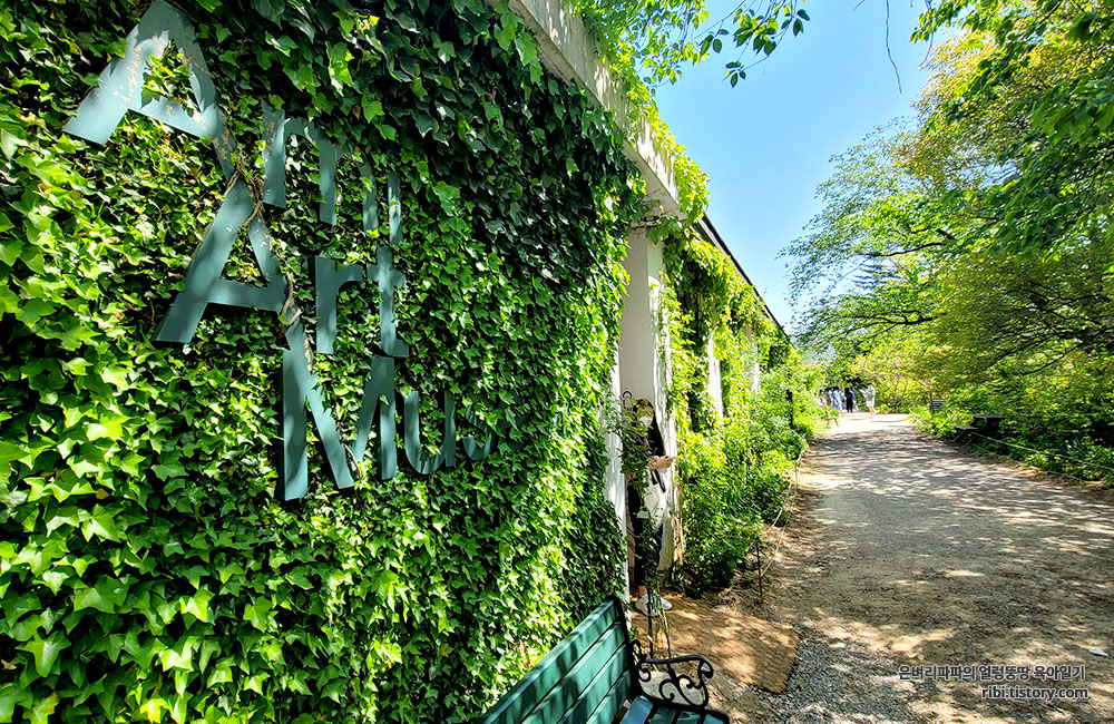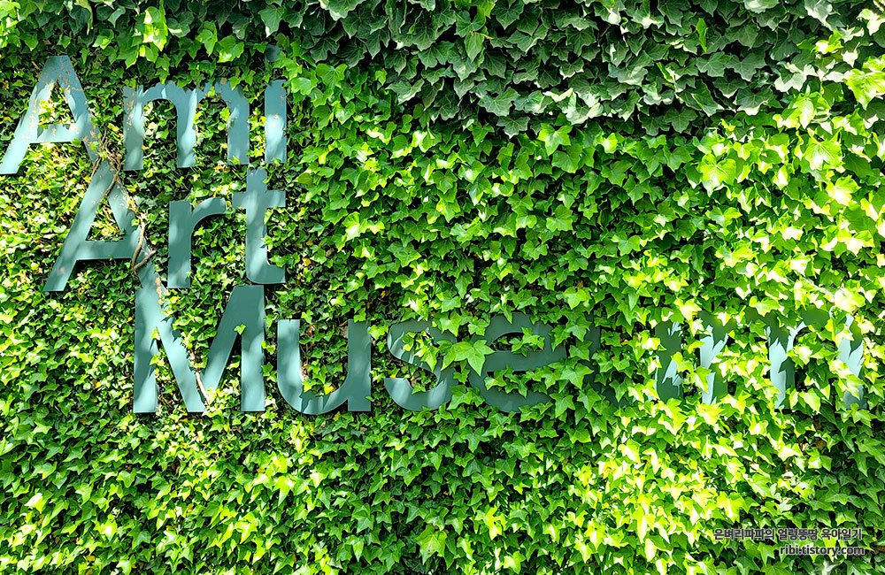 사람들은 가장 먼저 아미 미술관이 적힌 초록의 담쟁이로 뒤덮인 건물 앞에서 인증숏을 찍습니다.