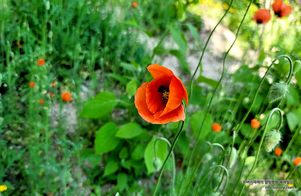 그중에서도 꽃양귀비가 한창 만개하고 있어 눈길을 사로잡더라고요.