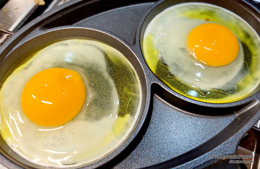 마지막으로 게란 노른자가 살아있는 프라이를 구워줍니다.