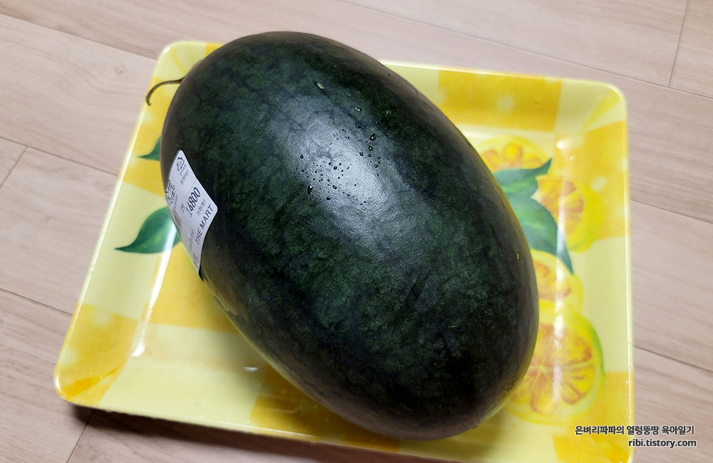 그러는 와중에 눈에 띈 모양이 조금 다른 수박을 발견했어요.