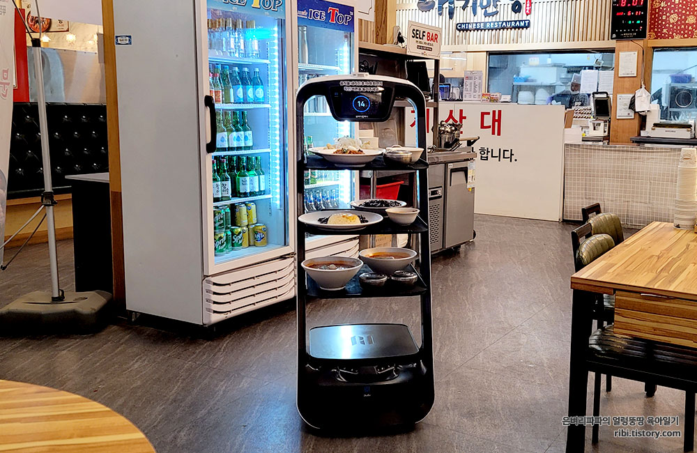 맛있게 드시라는 인사와 함께 서빙로봇은 유유히 사라집니다.ㅋㅋㅋ