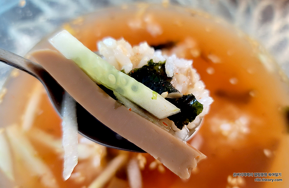 거기다가 동치미 특유의 새콤함과 시원함이 더해져 무더운 여름 입맛을 자극시키는 것 같습니다.