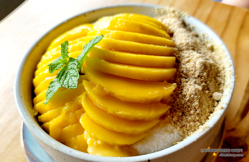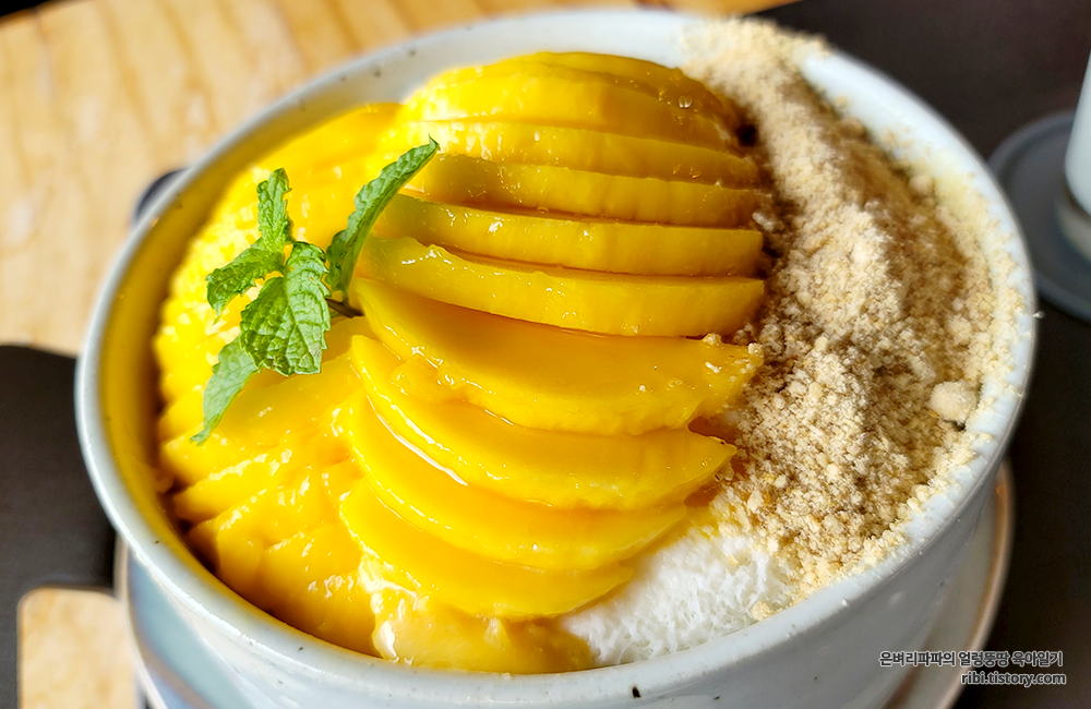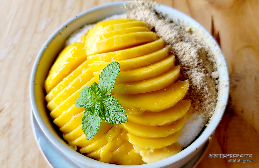 망고가 슬라이스 되어 크게 올라가 있으니, 심리적으로 더 푸짐한 느낌입니다.